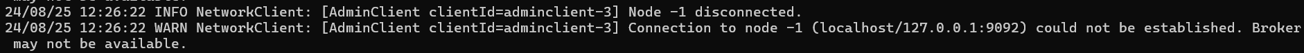 pyspark.errors.exceptions.captured.StreamingQueryException: [STREAM_FAILED] Query [id = 40fd2053-b21a-4741-9de9-02e0117bd8e5, runId = 7f0f20f5-bcad-4daa-8e0b-fd215d063ec9] terminated with exception: org.apache.kafka.common.errors.TimeoutException: Timed out waiting for a node assignment. Call: describeTopics