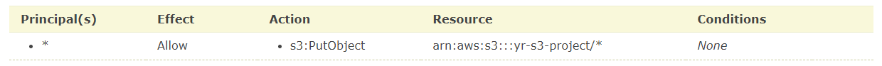 - 버킷에 대해 허용할 action으로 putObject하나만 설정