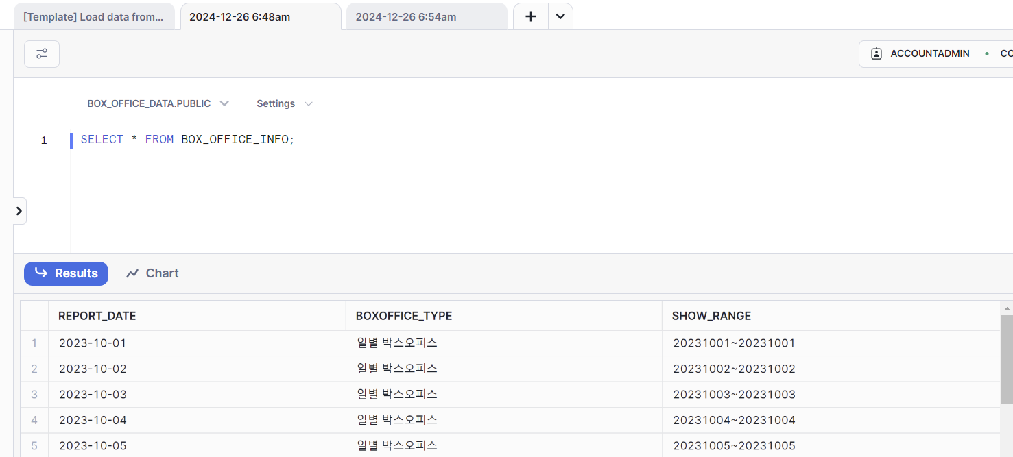 테이블을 조회하면 다음과 같이 데이터가 잘 로드 되었음을 확인할 수 있다.