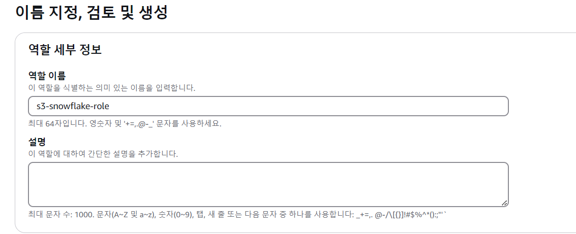 다음과 같이 이름을 지정한 뒤 역할을 생성한다.