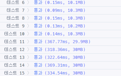 11, 12, 13, 14, 15번에서 시간초과가 발생하였다.